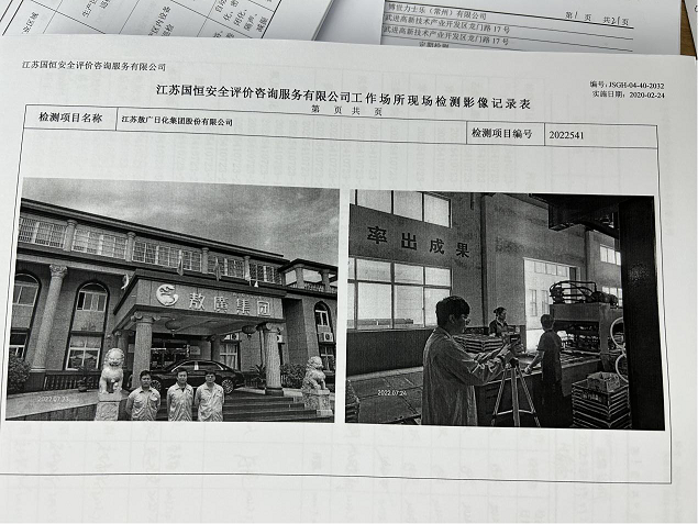 江蘇敖廣日化集團股份有限公司職業病危害現狀評價報告